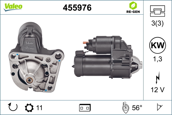 Dodatkowe informacje o produkcie Rozrusznik, VALEO RE-GEN REMANUFACTURED 455976 VALEO