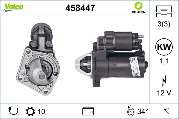Dodatkowe informacje o produkcie Rozrusznik, VALEO RE-GEN REMANUFACTURED 458447 VALEO