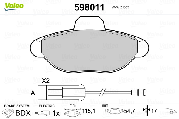 Dodatkowe informacje o produkcie Klocki hamulcowe - komplet 598011 VALEO