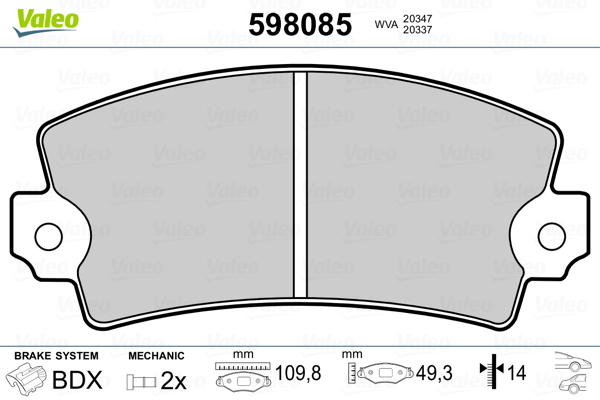Dodatkowe informacje o produkcie Klocki hamulcowe - komplet 598085 VALEO