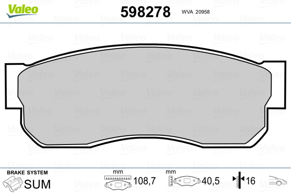 Dodatkowe informacje o produkcie Klocki hamulcowe - komplet 598278 VALEO
