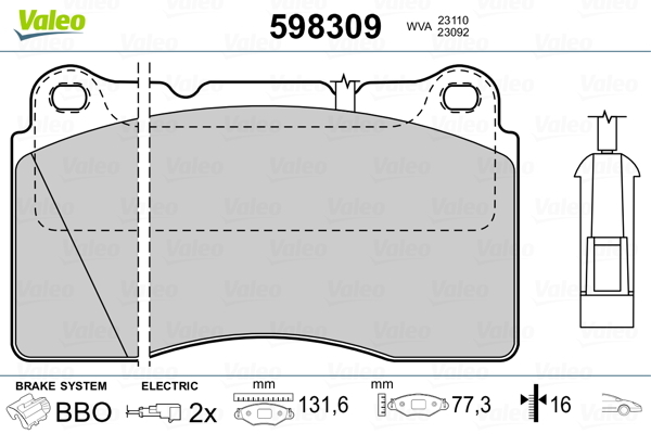Dodatkowe informacje o produkcie Klocki hamulcowe - komplet 598309 VALEO