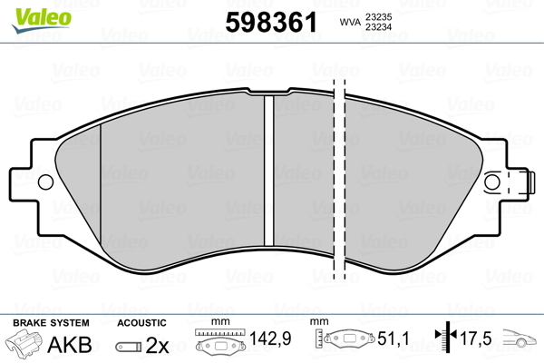 Dodatkowe informacje o produkcie Klocki hamulcowe - komplet 598361 VALEO