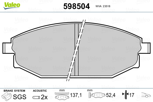 Dodatkowe informacje o produkcie Klocki hamulcowe - komplet 598504 VALEO
