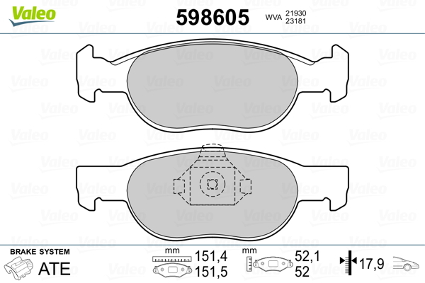 Dodatkowe informacje o produkcie Klocki hamulcowe - komplet 598605 VALEO