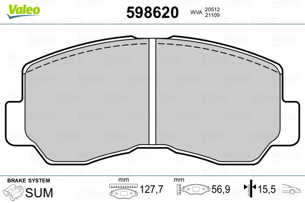 Dodatkowe informacje o produkcie Klocki hamulcowe - komplet 598620 VALEO