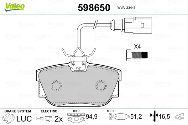 Dodatkowe informacje o produkcie Klocki hamulcowe - komplet 598650 VALEO