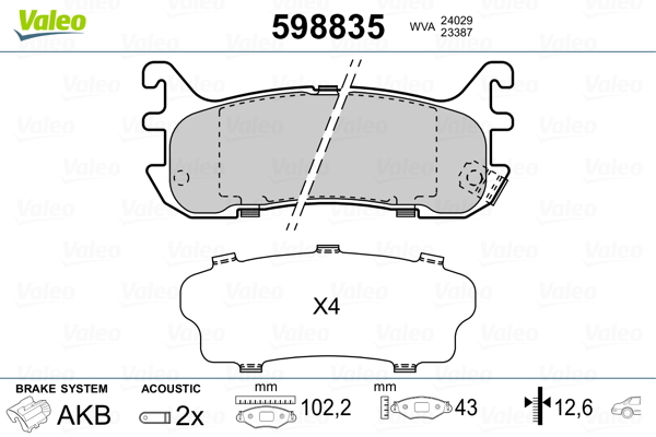 Dodatkowe informacje o produkcie Klocki hamulcowe - komplet 598835 VALEO