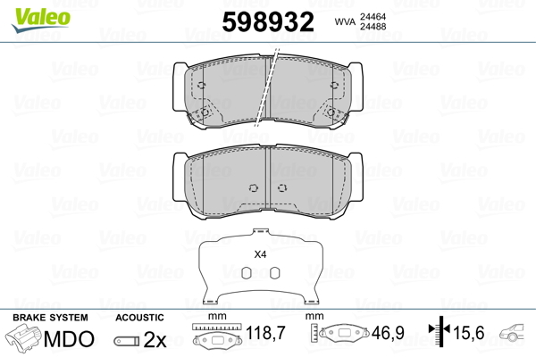 Dodatkowe informacje o produkcie Klocki hamulcowe - komplet 598932 VALEO