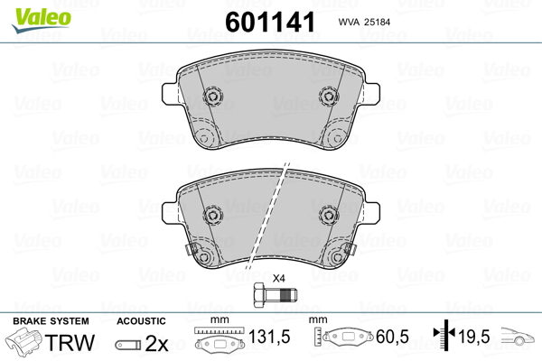 Dodatkowe informacje o produkcie Klocki hamulcowe - komplet 601141 VALEO