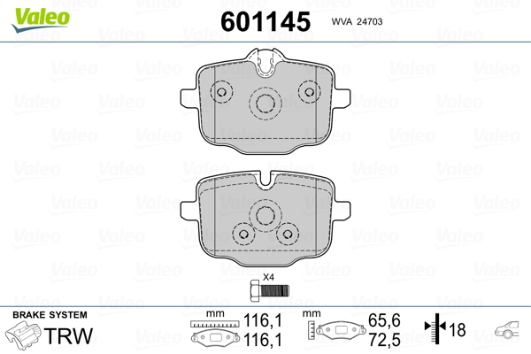 Dodatkowe informacje o produkcie Klocki hamulcowe - komplet 601145 VALEO